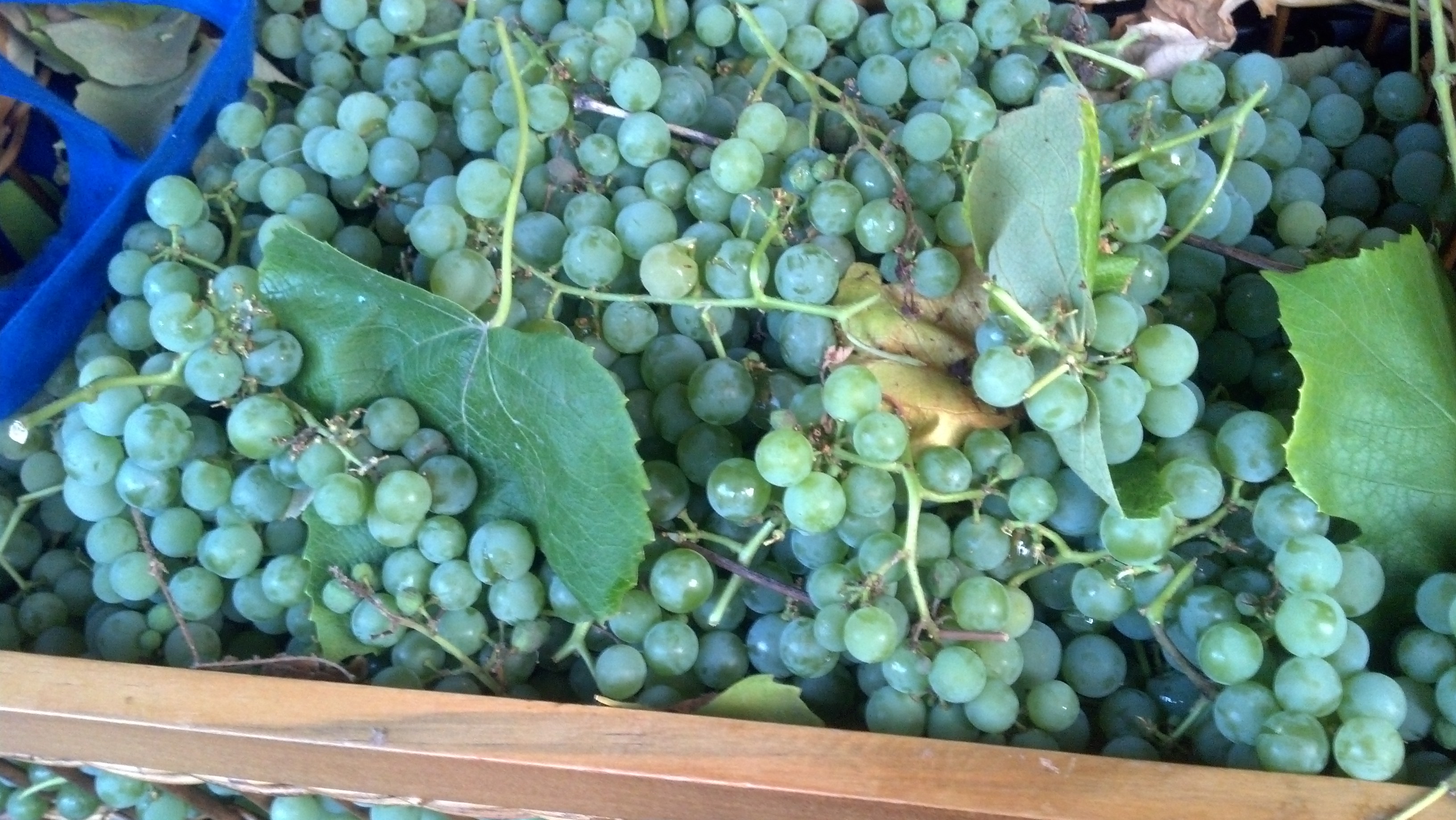 So for two or three hours, I picked as many grapes as I had means to carry. And if you’ve ever seen my car, you know I store tote bags in the back seat just in case I have to run to the store. I also happened to have my beautiful new wooden crate sitting there, so I swooped into the backyard of the owner of the grapes and picked to my heart’s content.